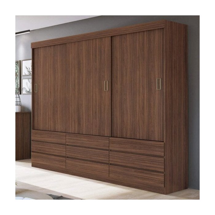Guarda-Roupa Casal 3 Portas de Correr 9 Gavetas Hércules Plus Imbuia Naturale