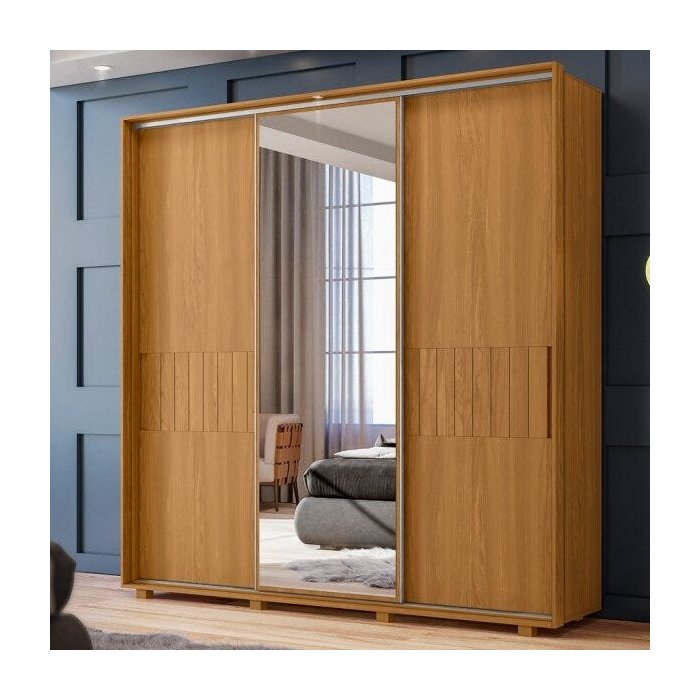 Guarda-Roupa Casal 3 Portas de Correr com Espelho Luminare Carvalho Grife/ Off White