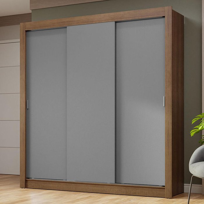 Guarda-roupa Casal 3 Portas de Correr Rustic/cinza Nobre Madesa