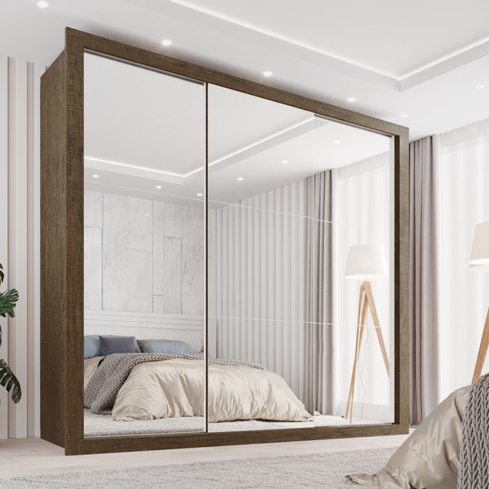 Guarda-Roupa Casal 3 Portas Espelhado e 4 Gavetas Costa Rica Ipê