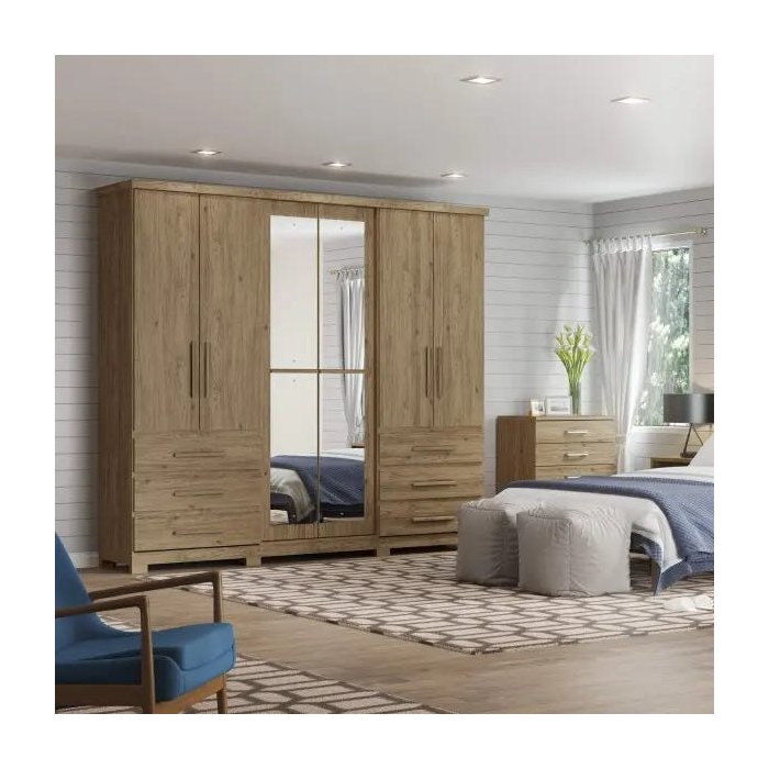 Guarda-Roupa Casal 4 Espelhos 4 Portas 6 Gavetas Campeche Henn