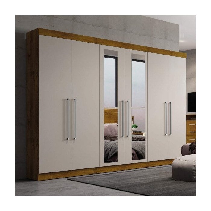 Guarda-Roupa Casal 4 Espelhos 6 Portas 4 Gavetas Requinte Espresso Móveis Canela/Off White
