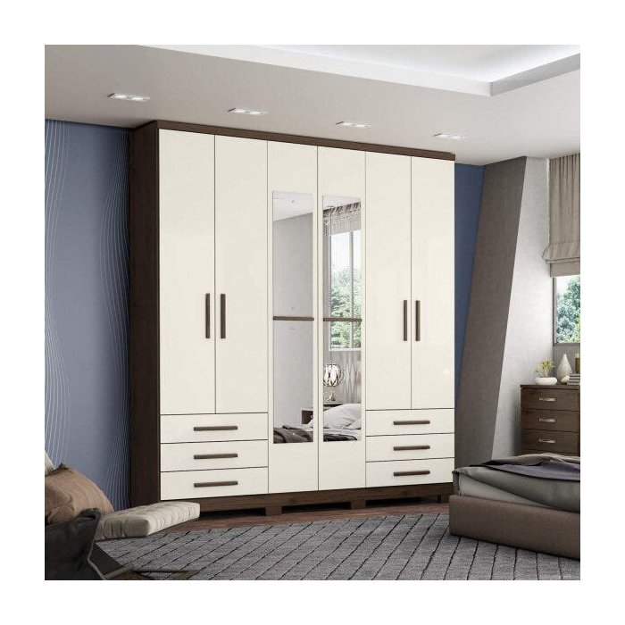 Guarda-Roupa Casal 4 Espelhos 6 Portas 6 Gavetas Savini Henn Café/OFF White