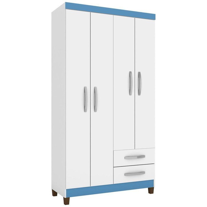 Guarda Roupa Casal 4 Portas 2 Gavetas Branco Azul Branco