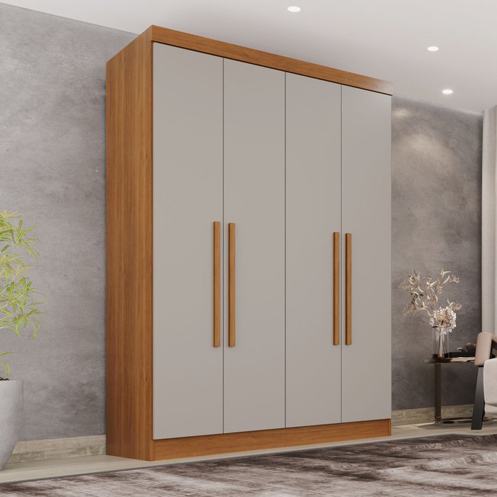 Guarda-roupa Casal 4 Portas 2 Gavetas França Cinamomo/Off White
