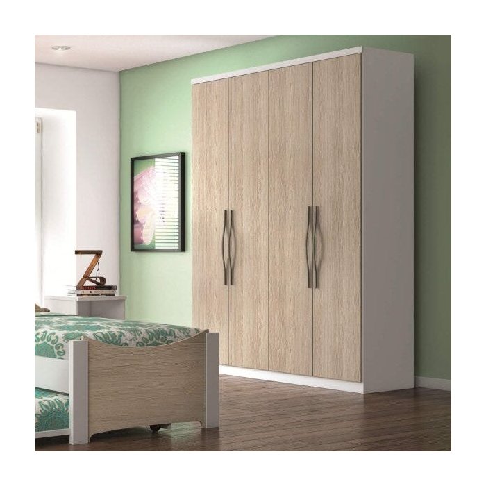 Guarda-Roupa Casal 4 Portas 3 Gavetas Caribe Móveis Rimo Branco/Savana