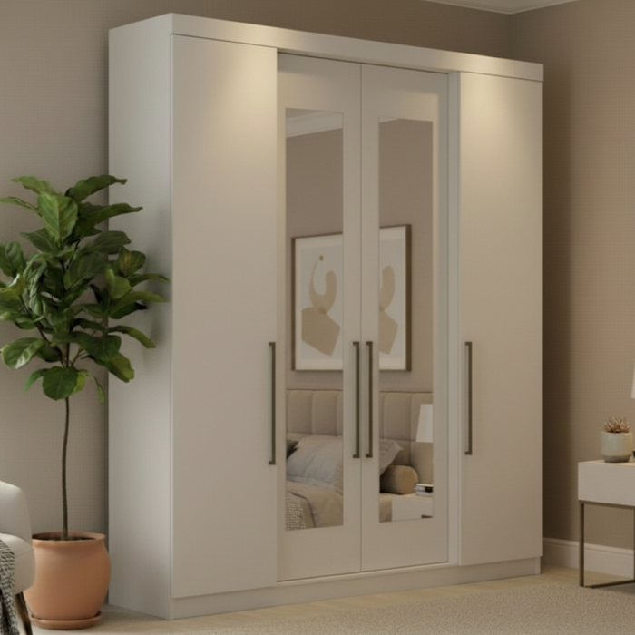 Guarda Roupa Casal 4 Portas 4 Gavetas Berlim com Espelho Branco