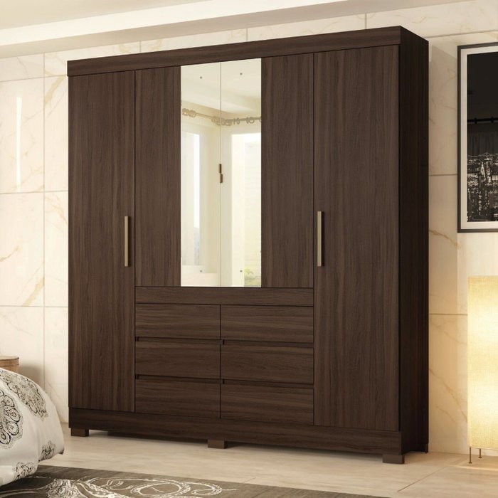 Modelo com design moderno e visual diferenciado, ótima capacidade de acomodação de roupas devido a disposição excelente de suas prateleiras, espelhos centrais de série, portas centrais com puxadores em alumínio. 6 gavetas externas com deslize perfeito, ótimo aproveitamento interno e profundidade ideal. Pés em PVC de série que facilitam a limpeza do piso próximo ao produto. Para garantir a qualidade do produto dentro da embalagem, as caixas são revestidas por um plástico termo encolhível e todas as peças são separadas por isomanta, tudo para preservar e evitar o atrito entre as peças dentro da embalagem. Você contará também com um manual com o passo a passo para auxiliar no momento da sua montagem!