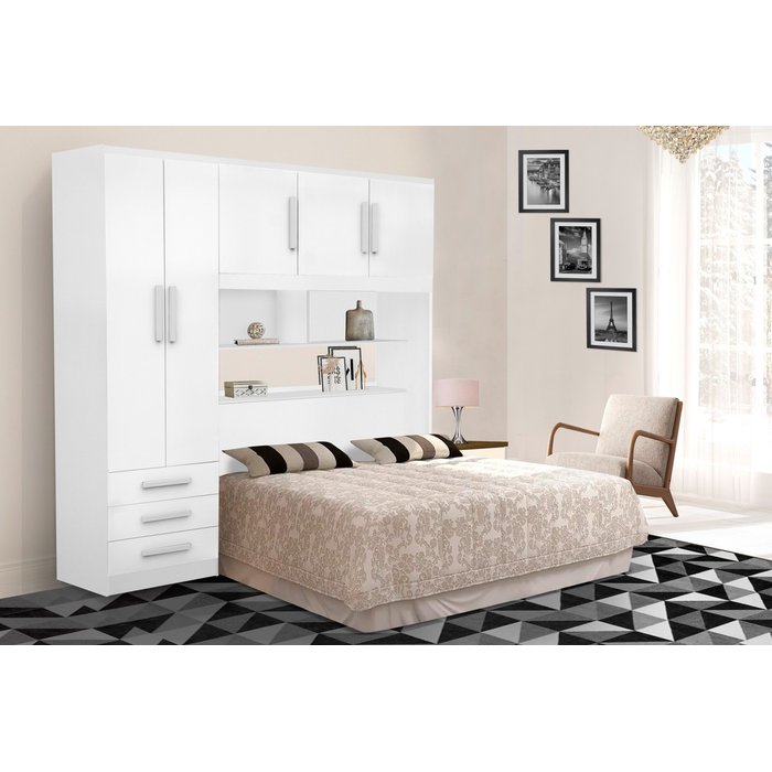Guarda Roupa Casal 5 Portas Cabeceira Baú México - Rud Rack Branco