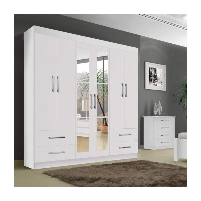 Guarda-Roupa Casal 6 Espelhos 6 Portas Recife Leifer Branco