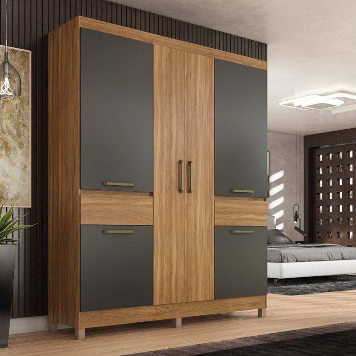 Guarda-roupa Casal 6 Portas 159,6cm X 201cm Mauá Amêndola/Grafito Prime TX