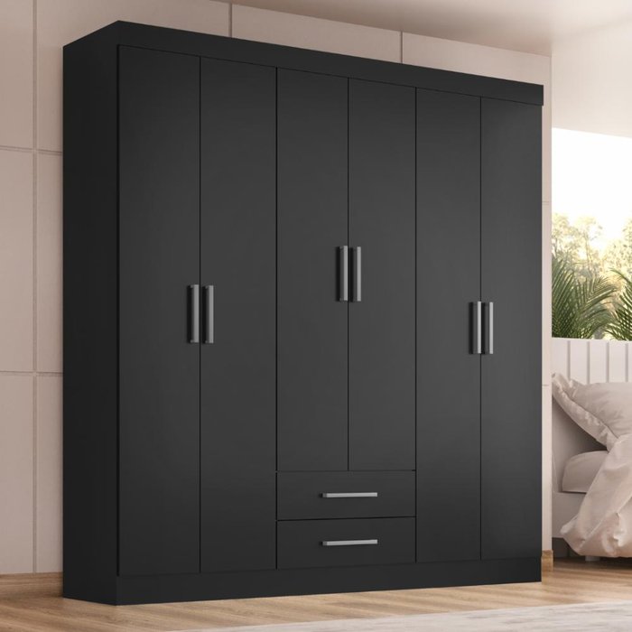 Guarda-Roupa Casal 6 Portas 2 Gavetas Kioto Ônix