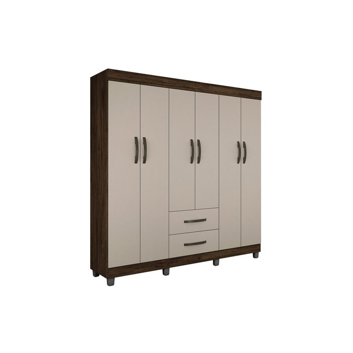 Guarda Roupa Casal 6 Portas 2 Gavetas Paris CHF Moveis Imbuia/Off White