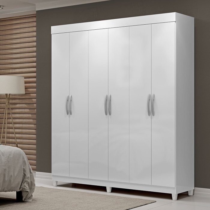 Guarda Roupa Casal 6 Portas 2 Gavetas Santarém Espresso Móveis Branco/Branco