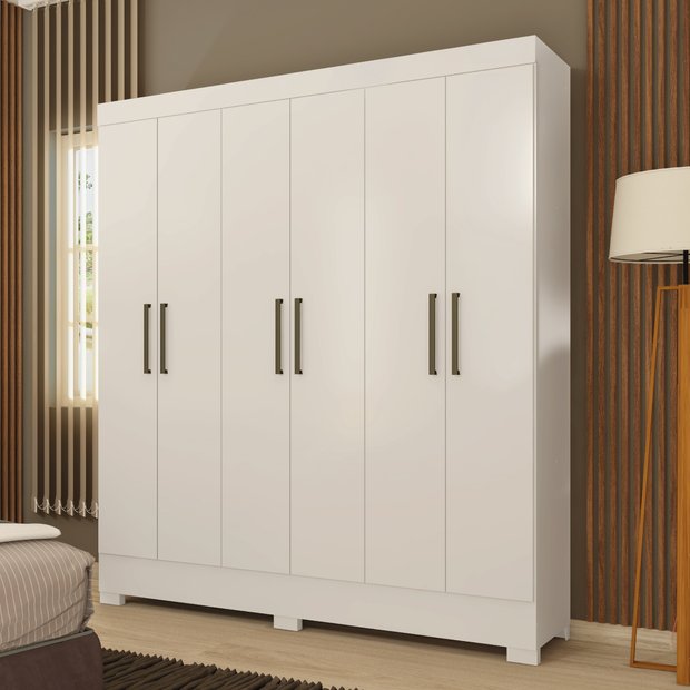 Guarda Roupa Casal 6 Portas 2 Gavetas Verso Branco