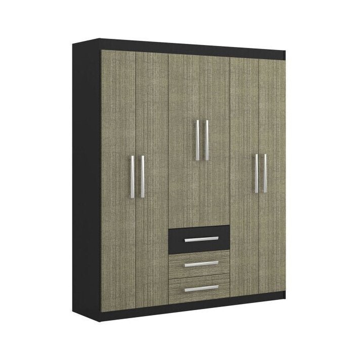 Guarda-Roupa Casal 6 Portas 3 Gavetas América Rodial Preto/Teka