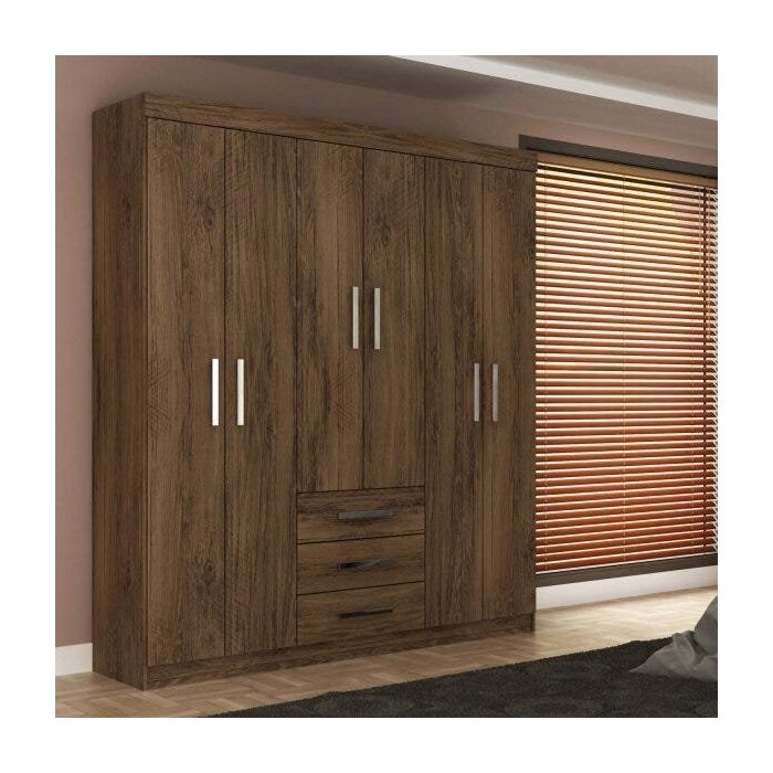 Guarda-Roupa Casal 6 Portas 3 Gavetas Fortaleza Rodial Cacau
