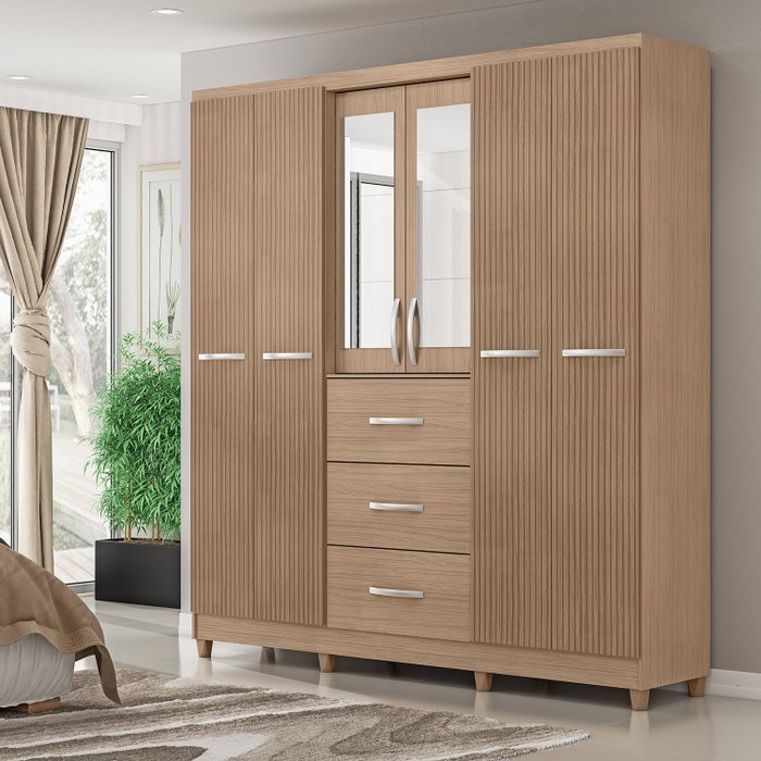 Guarda Roupa Casal 6 Portas 3 Gavetas Londrina Espresso Móveis Havana/Havana Ripado