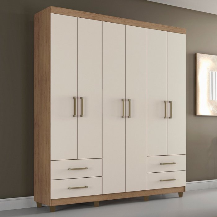 Guarda Roupa Casal 6 Portas 4 Gavetas Canadá Conquista Móveis Amêndoa/Off White