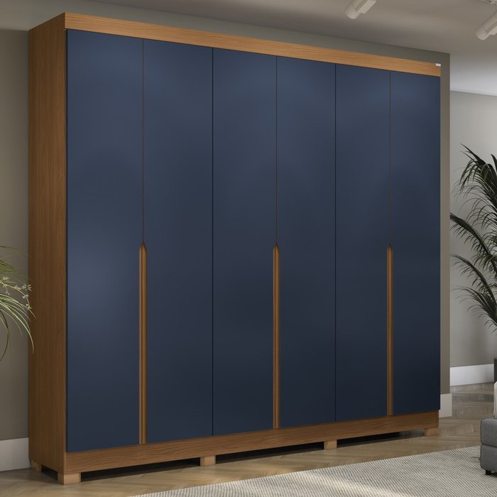 Guarda-roupa Casal 6 Portas 4 Gavetas com Pés Safira Canela/Azul