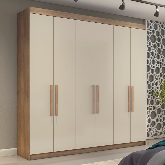Guarda Roupa Casal 6 Portas 4 Gavetas França Conquista Móveis Amêndoa/Off White