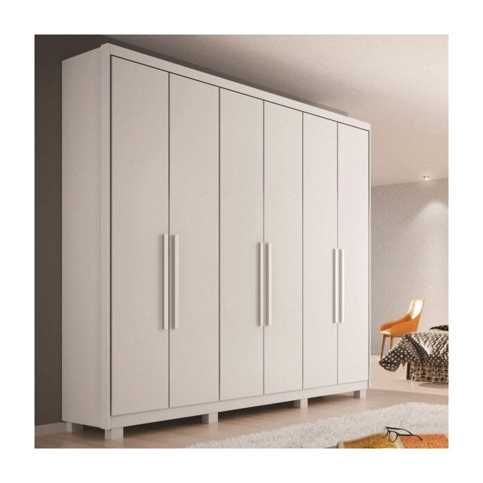 Guarda-Roupa Casal 6 Portas 4 Gavetas Internas Jundiai Móveis Rimo Branco