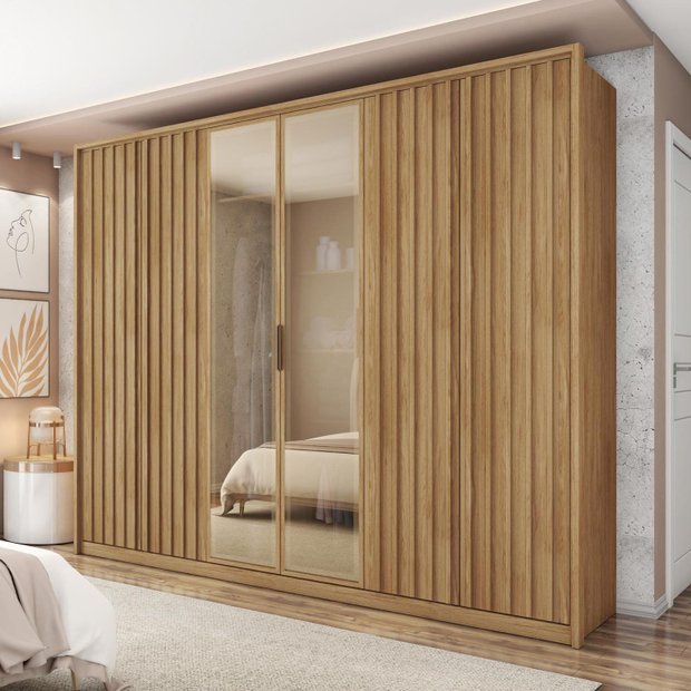 Guarda Roupa Casal 6 Portas 4 Gavetas Ripadas com Espelho Suburban Espresso Móveis Buriti
