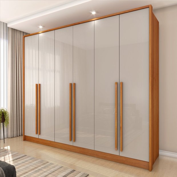 Guarda Roupa Casal 6 Portas 5 Gavetas 275cm Ariel Yescasa Cinamomo/Off White