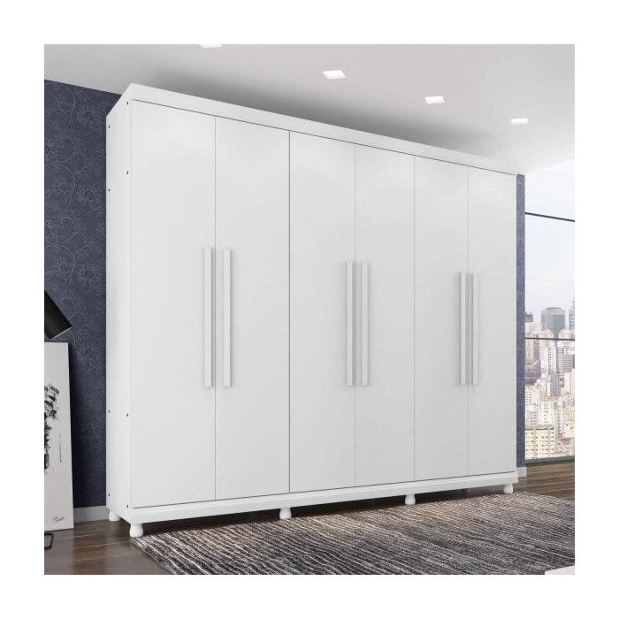 Guarda-Roupa Casal 6 Portas 5 Gavetas Antares Móveis Lanza Branco