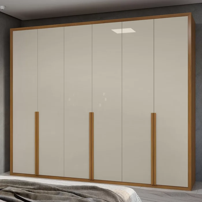 Guarda-Roupa Casal 6 Portas 5 Gavetas Únique Rovere Naturale/Off White