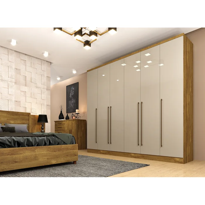 Guarda-Roupa Casal 6 Portas 8 Gavetas Portugal Espresso Móveis Ipe Rustic/Off White