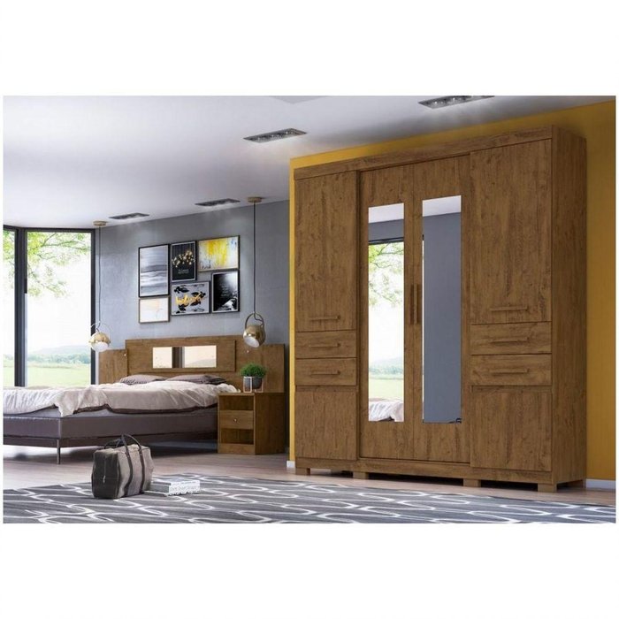 Guarda Roupa Casal Com Espelho 6 Portas Aracaju Moval Castanho Wood