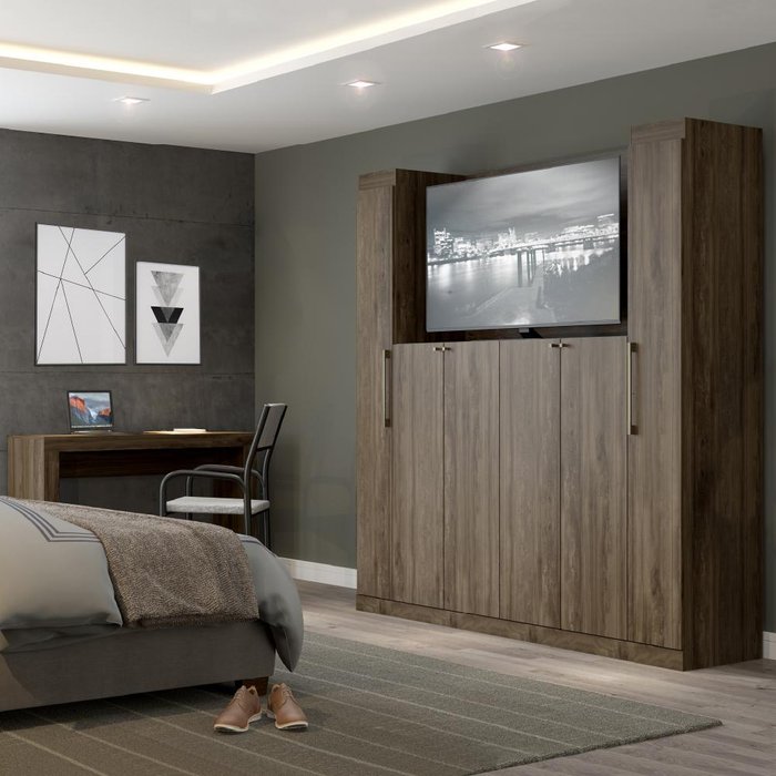 Guarda Roupa Casal 6 Portas com Escrivaninha e Painel de TV 55 Polegadas Vega Legno Carraro Legno
