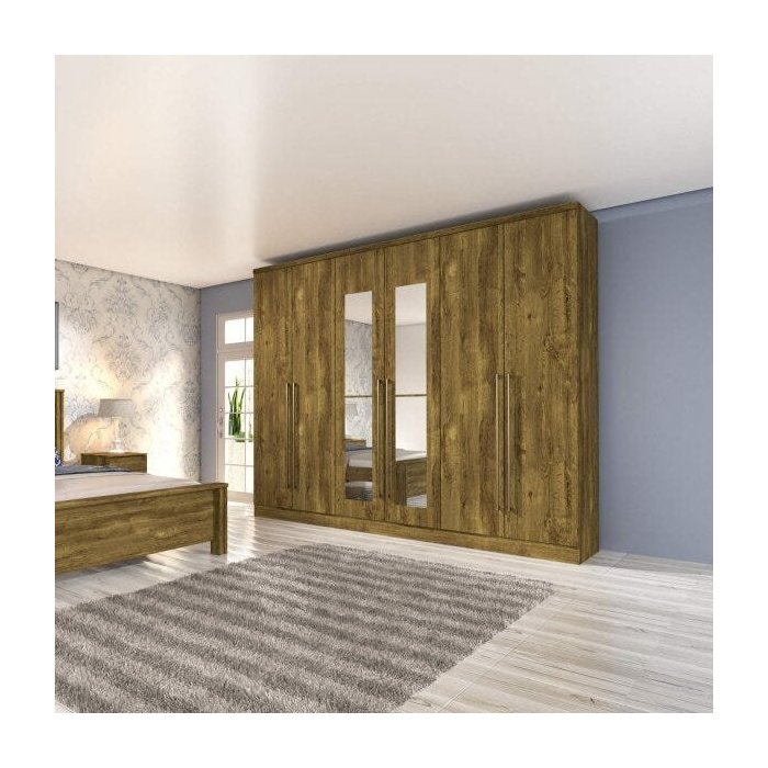 Guarda-Roupa Casal 6 Portas com Espelho Premium Tcil Móveis Ipê Rustic