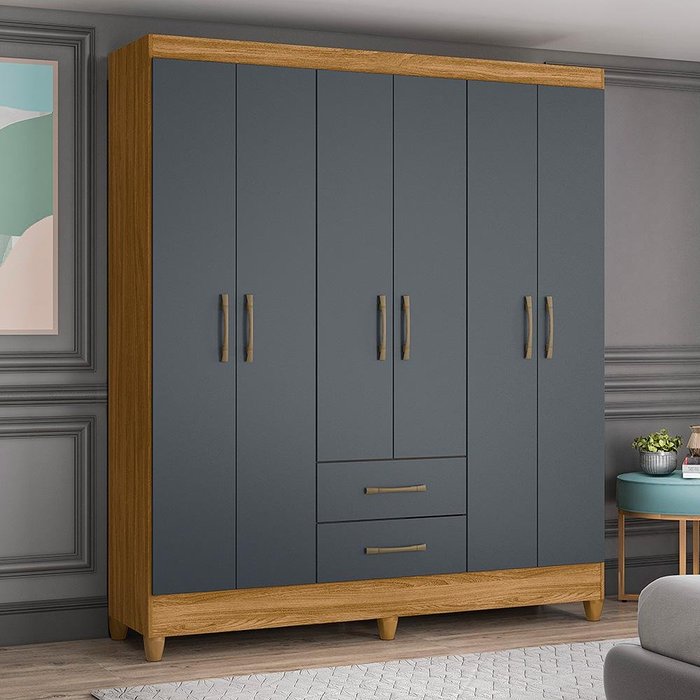 Guarda Roupa Casal 6 portas e 2 gavetas Panamá - Freijo / Cinza