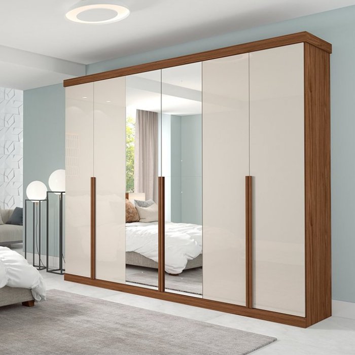 Guarda-Roupa Casal 6 Portas Guarapari MDF Panan Móveis Avelã/Off White