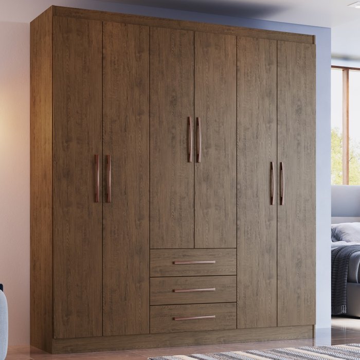Durabilidade é a palavra para o Guarda-Roupa paris 2006, desenvolvido em 100% MDP, o produto possui 6 portas de abrir. A parte interna conta com cabideiros e calceiros de madeira com padrão na cor branca, 4 prateleiras e 3 gavetas de corrediças metálicas com pintura UV, material que proporciona maior resistência e proteção ao produto.