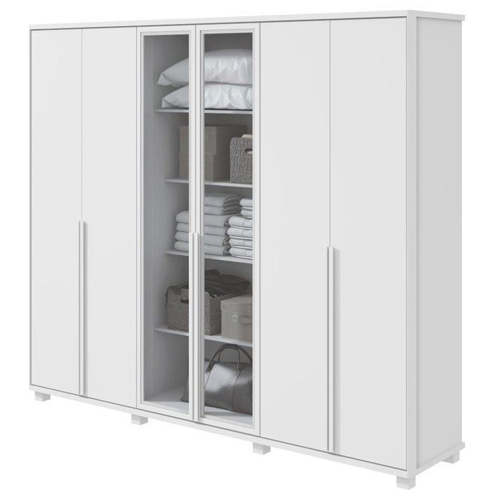 Guarda Roupa Casal 6 Portas Solaris com 2 Portas de Vidro Fume e Pés Branco Branco 2.3