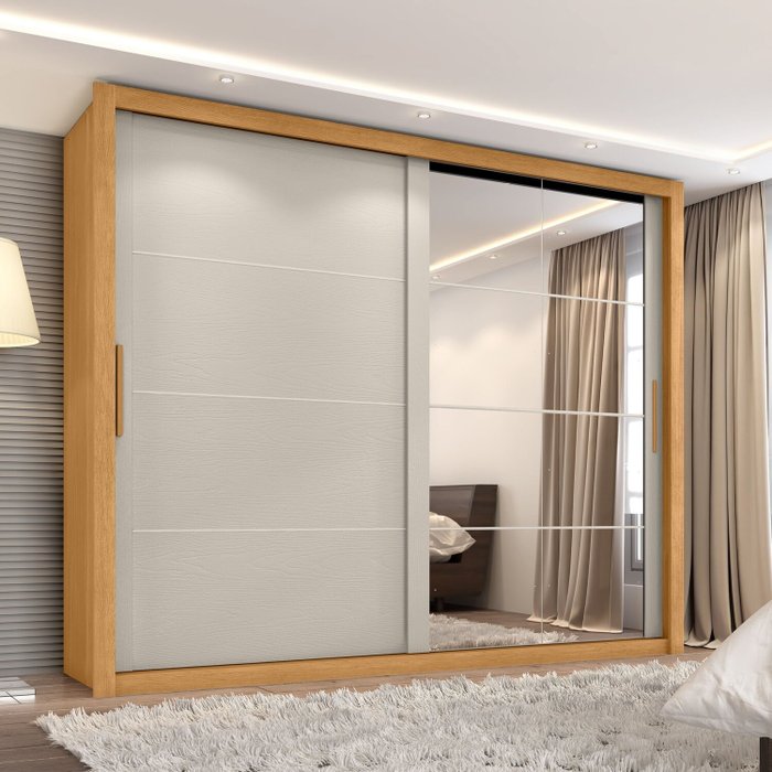 O Guarda-Roupa Essencial tem excelentes repartições e amplo espaço para você organizar roupas, edredons, travesseiros, calçados e objetos pessoais. Moderno e elegante, tem duas portas de correr com oito espelhos e seis gavetas, sendo a primeira gaveta de cada lado com colmeia para organizar peças e objetos pessoais. Acabamento interno na mesma cor do móvel o Guarda-Roupa Essencial reúne harmoniosamente beleza, qualidade e durabilidade.