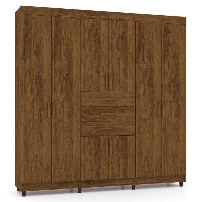 Guarda Roupa Casal 8 Portas 3 Gavetas 218cm Angelim V02 Imbuia Rústico - Mpozenato