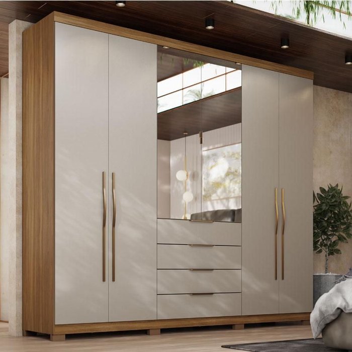 Guarda Roupa Casal Ambiente Giardino 6 Portas Amêndola Nude Prime TX com Espelho e Pés - Demóbile