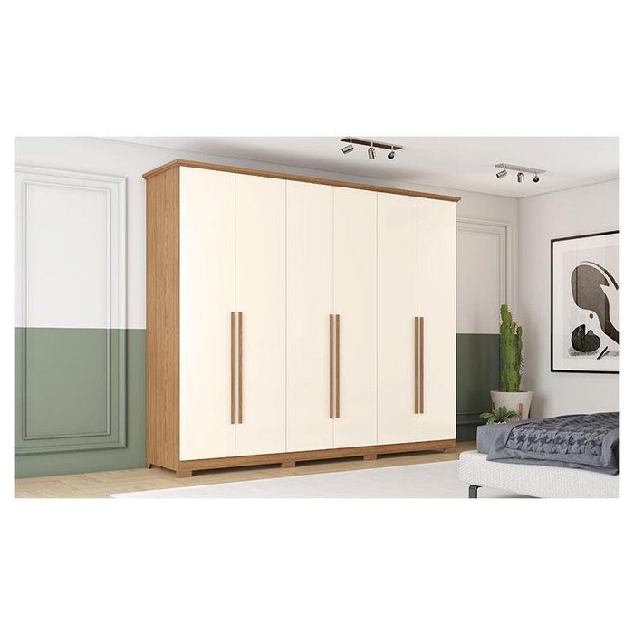 Guarda Roupa Casal Ambiente Leblon 6 Portas Off White Nature - Henn