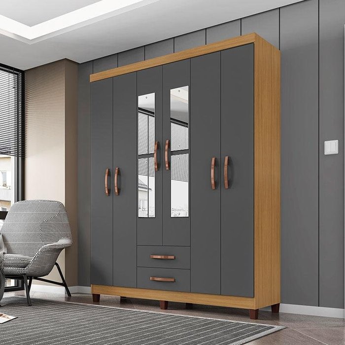 Guarda Roupa Casal Ambiente Modena com Espelho 6 Portas Carvalho Americano Grafite - Incorplac