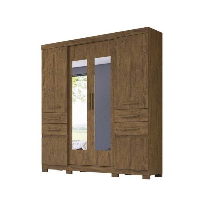 Guarda-roupa Casal Aracaju 6 Portas com Espelho Castanho Wood Moval