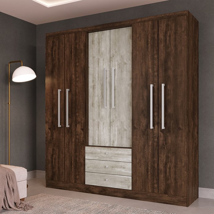 Guarda-Roupa Casal Ares 6 Portas 3 Gv 184,5 x 199,5 x 47 Cm MDP Castanho Teka 3079 - MENU