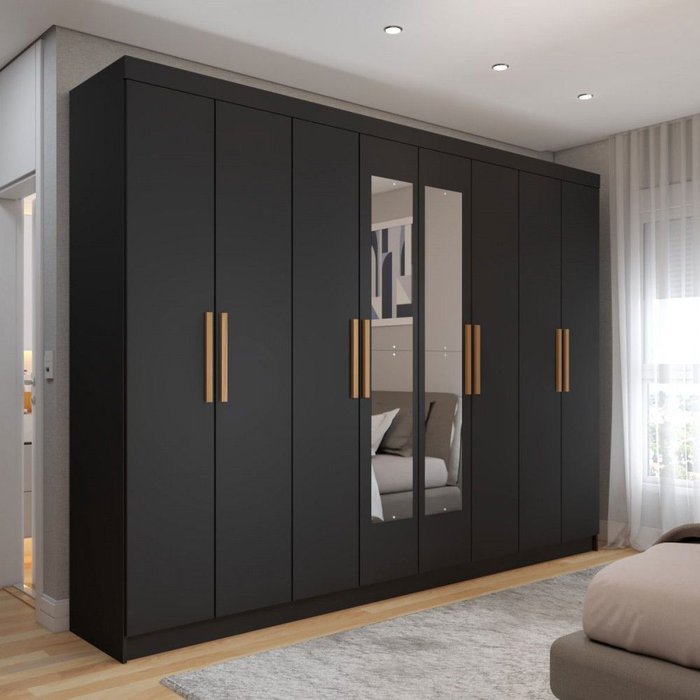 Guarda-roupa Casal Aurora Radiante 8 Portas 4 Gavetas com Espelho - Panorama Móveis Nero