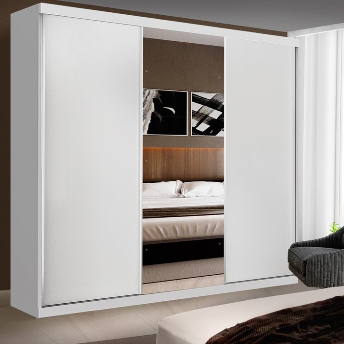 Guarda Roupa Casal Barcelona 3 Port de Correr 4 Gav e 3 Esp:branco Branco