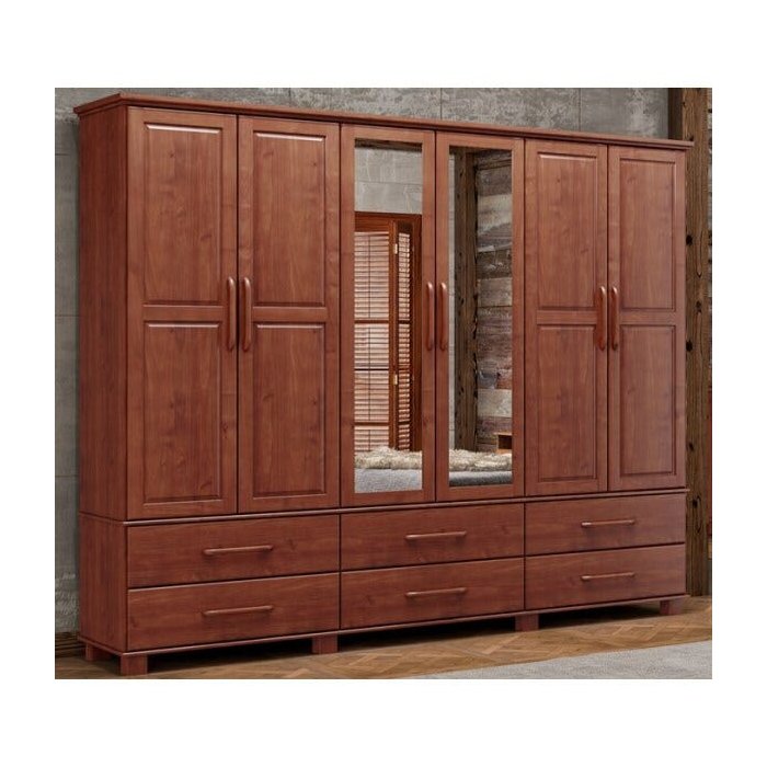Guarda-Roupa Casal Bipartido, Linha Ouro, com um design exclusivo e com visual aconchegante, para você que quer dar um toque rústico ao ambiente com excelente qualidade e acabamento. Estrutura 100% em madeira maciça de pinus, madeira de reflorestamento para melhor durabilidade e resistência à peça, contando com acabamento em pintura acetinada verniz PU e UV na cor Imbuia (Semi brilho). Composto por 6 Portas com dobradiças metálicas, prateleiras com amplo espaço interno, portas centrais com espelho de 3 mm, 6 gavetas externas com corrediças telescópicas que garante um fechamento mais leve e suave, com sistema de montagem bipartido, ou seja, possui uma divisão no móvel que o separa em duas partes, cabideiro em alumínio, puxadores robustos de madeira maciça, chapéu superior ressaltado de 40mm, acompanha pés de madeira maciça. Confira também outros móveis da linha Ouro em nosso site. Este móvel chegará em sua casa separado em 4 volumes.
