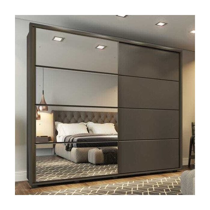 Possui duas portas deslizantes com sistema de correr com amortecimento, perfil alinhador de metal que proporciona resistência e durabilidade. Porta com espelhos e acabamento soft. Este projeto foi desenvolvido atender os mais criteriosos usuários, que estão em busca de um produto de funcional, deixando seus ambientes mais aconchegantes e modernos.