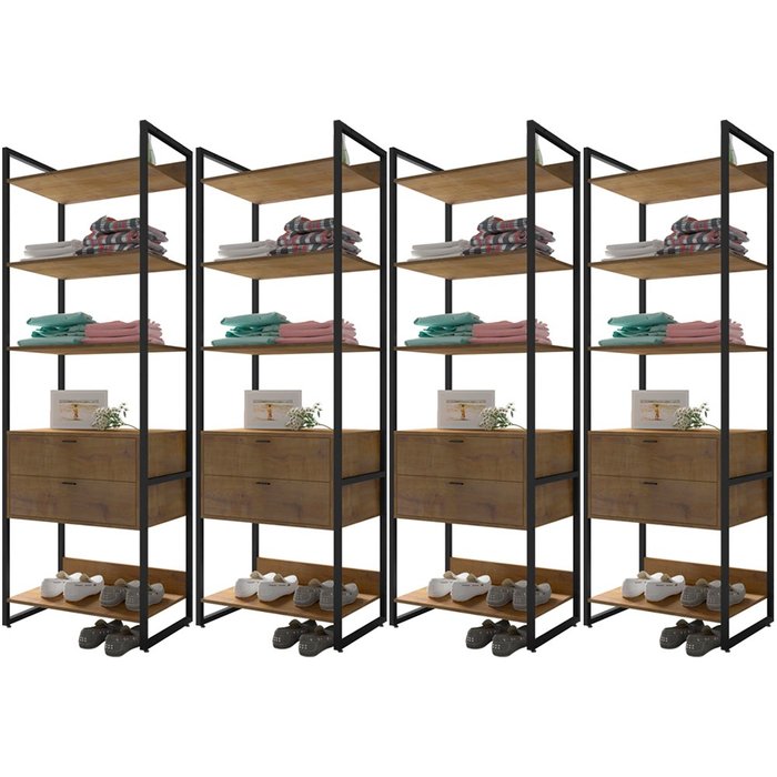 Assim, você pode ter o ambiente belo e funcional que tanto deseja atendendo às suas necessidades e que se adequem ao espaço disponível. Nisso, a Mpozenato apresenta o Guarda Roupa Modulado Closet! São 4 módulos de estrutura em aço e 16 prateleiras em MDP de alta qualidade, contando com 8 gavetas de deslize suave, tudo para facilitar a organização das suas roupas e sapatos. Aliás, os módulos são versáteis, ou seja, podem ser utilizados em outros cômodos de acordo com a que você precisar!